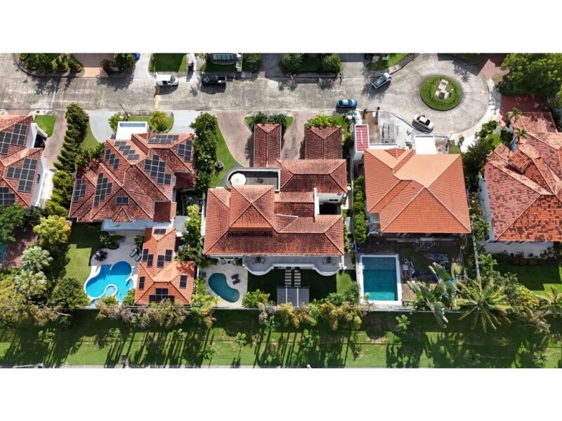This spectacular home is located in Costa del Este, one of the most exclusive and fastest growing areas in Panama City. With a land area of 1300 M2, this property offers ample indoor and outdoor spaces for you and your family to enjoy a life of luxury and comfort. With an impressive constructed area of 850 M2, this house has 5 bedrooms and 6 bathrooms, making it the ideal choice for large families or for those looking for a large space to entertain their guests. In addition, it has 3 garages, so you can park your vehicles safely and comfortably. Inside this exclusive property, you will find top quality internal features, designed to provide you with the greatest comfort and convenience. Inside, you can enjoy air conditioning in all areas, built-in closets in the bedrooms, a balcony with panoramic views, a half bathroom and a bathroom in the master bedroom, a water heater, large closets and a fully equipped modern kitchen. In addition, this beautiful house has a storage room and a service room, which will allow you to always have everything in order and organized. Its ceramic and marble floors give it a touch of elegance and sophistication, while its single-family design guarantees privacy and tranquility at all times. This property is located in a gated community with 24-hour private security, which gives you the peace and security that you and your family deserve. In addition, it is a pet-friendly home, so you can enjoy the company of your four-legged friends without restrictions. Among the external features offered by this exclusive house, you can find a barbecue/grill/quicho, garage for your visitors, a beautiful pool to enjoy sunny days, a terrace for your outdoor gatherings, a lush garden and green areas that will make you feel in contact with nature. In addition, its location close to parks, children's areas, sports areas and residential areas guarantee a life full of entertainment and fun. If you are looking for a luxury property, renovated and ready to be moved into, this house is the perfect option for you. Its entrance gate and driver's room are features that will provide you with the comfort and exclusivity you have always wanted. Don't miss this unique opportunity and contact us to schedule a visit to this impressive property in Juan Díaz, Panama.